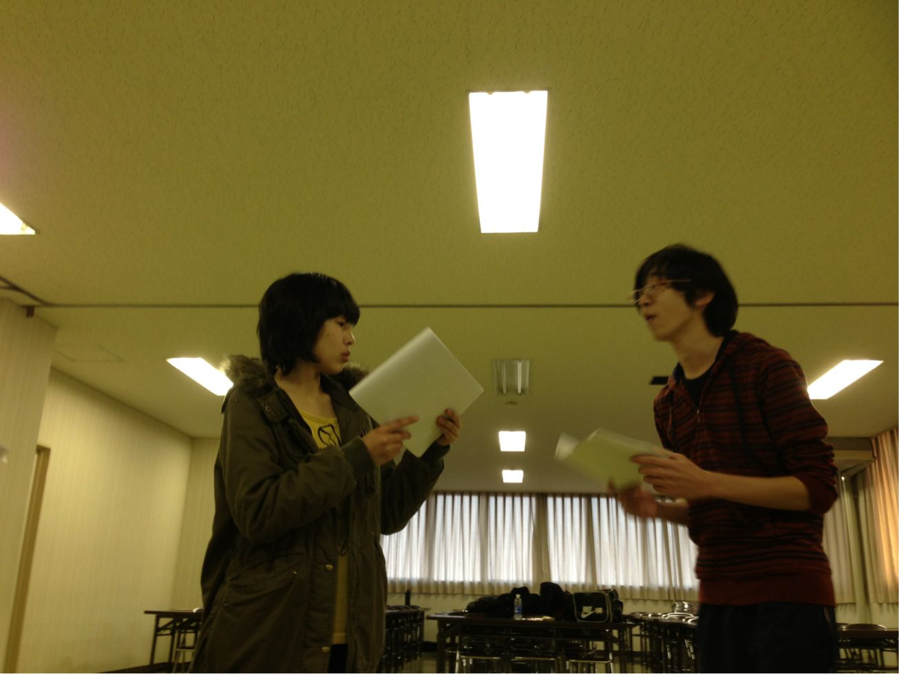 これの次は台本を覚えるのをかねた立ち稽古てきなものをして練習が終了。